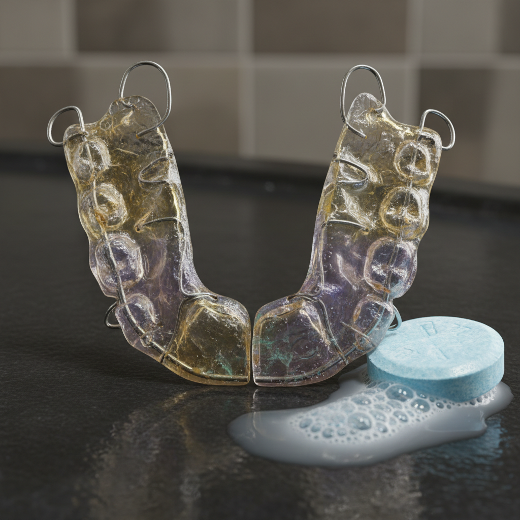Key Takeaway: Using denture cleaner tablets typically results in irreversible cosmetic damage, turning invisible retainers into noticeable, discolored appliances.