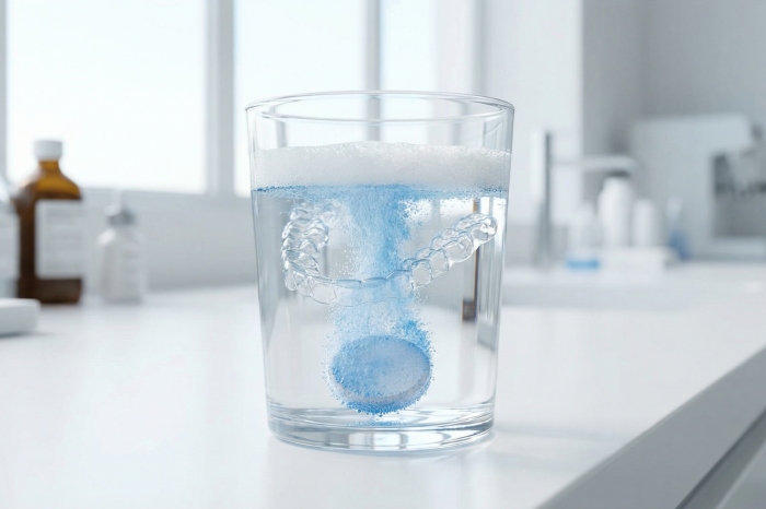 For patients who are in a rush, we recommend a 5-minute express soak using our professional tablets. This kills the bacteria that grew while they were sleeping and removes any dried saliva. It makes the aligners feel “brand new” every single morning, which is a great psychological boost for the patient as they start their day.